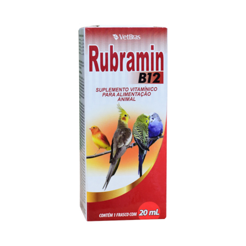 Rubramin B12 é uma associação das vitaminas do complexo B com as vitaminas E e K, que são muito importantes, contribuindo para o bom funcionamento de alguns órgãos dos animais. Indicado para o crescimento de animais mais idosos e animais mais fracos, todas as vezes em que seja necessária a suplementação de vitaminas do complexo B, vitamina E e vitamina K.