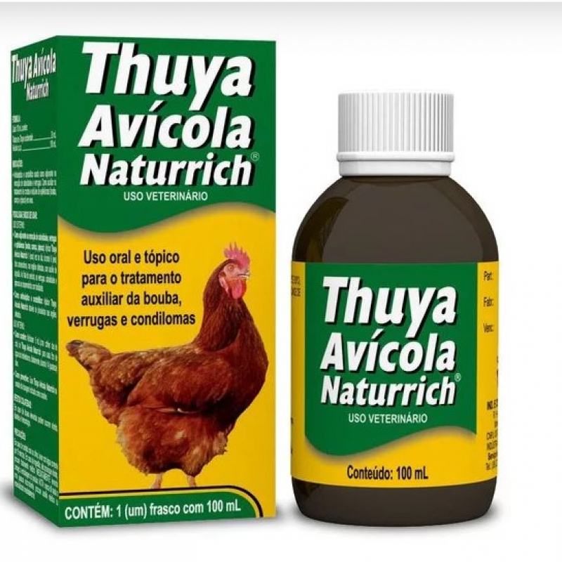 Thuya Avicola é um produto indicado no tratamento de verrugas e condilomas, resultantes de processos infecciosos e de afecções como a bouba avícola e possui ação como adjuvante na remoção de calosidades em aves.