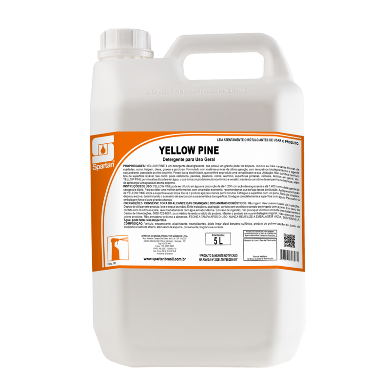 YELLOW PINE é um detergente desengraxante, que possui grande poder de limpeza, removendo as mais variadas formas de sujidades,